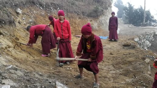 В свободное от учёбы время, молодые послушники идут на общественные работы.