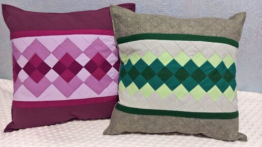 2 варианта лоскутных наволочек сшитых из полос в технике семинолы
