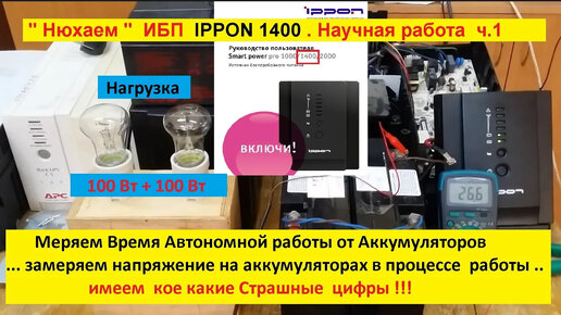 ИБП IPPON 1400 - "Нюхаем" . Часть 1 . Замеряем Время Автономной работы и Напряжение на аккумах .