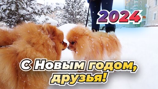 Маленькие собаки по большому снегу. Новый год 2024