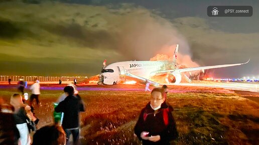 Драма в Токио- лайнер с сотнями пассажиров загорелся при посадке // 2-й день испытаний для Японии