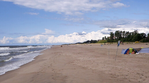 Берег моря, пляж и палатка. Балтийское море. Поселок Янтарный, пляж, 19 июля 2021 г.
