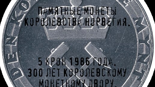 Королевство Норвегия. 5 крон 1986 года. 300 лет Королевскому монетному двору.