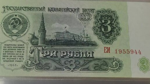 Стоимость коллекционной банкноты 3 рубля 1961 года.