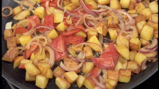 Жареная картошка с колбасой и луком