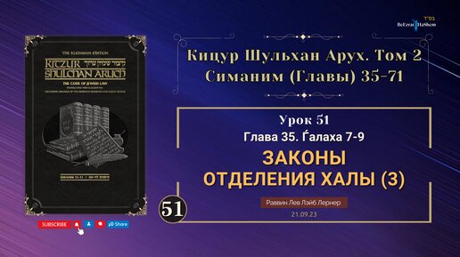 𝟱𝟭. (21.09) Кицур Шульхан Арух - Глава 35 (7-9) - Законы отделения Халы (3) - Рабби Лев Лэйб Лернер