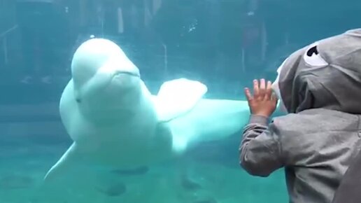 Прикольный Кит Белуга смешно троллит детей в аквапарке