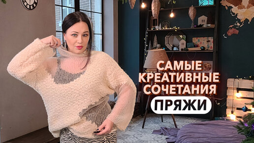 Толстый хлопок и тонкий кидмохер можно сочетать в технике интарсия спицами