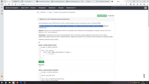 Java. Является ли число палиндромом. Решение задачи через String.