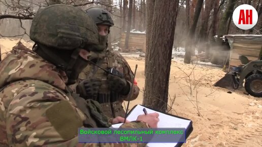 Работа российского войскового лесопильного комплекса ВМЛК-1 на Луганском направлении.