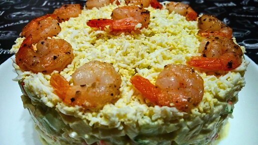 ПРАЗДНИЧНЫЙ САЛАТ С МЯСОМ КРИЛЯ / Вкуснейший салат из морепродуктов с авокадо, огурцом и яблоком