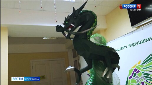 На конкурсе новогодних ёлок в Костромской сельхозакадемии победил зеленый картонный дракон