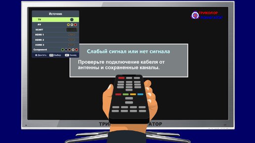 Слабый сигнал или нет сигнала на Триколор ТВ. Что делать? Нет сигнала на телевизоре.