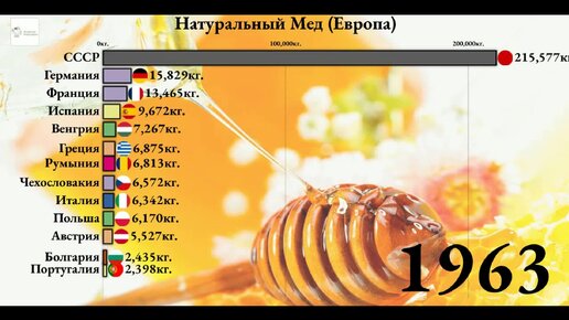 Производство меда 1961-2021 год (ЕВРОПА)[ИНФОГРАФИКА]. Кто же лидер?