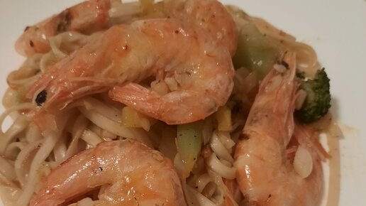 И снова китайская кухня. Готовит муж. Королевские креветки, овощи и удон. И вкусный и полезный ужин готов