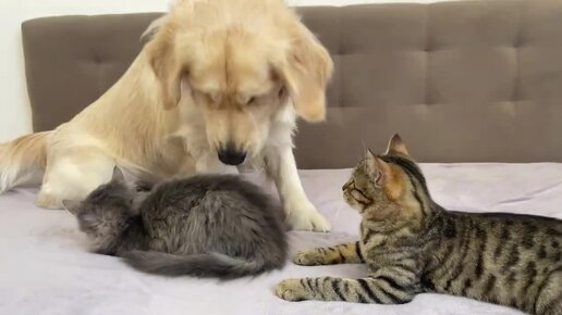Ротвейлер не может жить без своих друзей котов