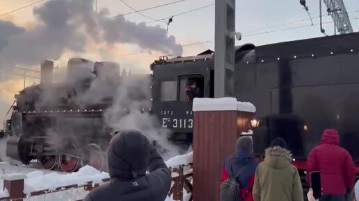 Процесс стыковки паровоза с поездом Уральский экспресс