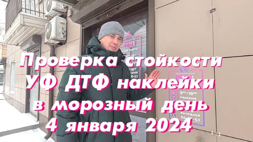 Проверка стойкости УФ ДТФ наклейки в морозный день 4 января 2024