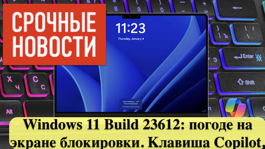 Windows 11 Build 23612: погоде на экране блокировки. Клавиша Copilot.