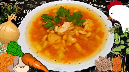 КУРИНЫЙ СУП С БЕЛОЙ ФАСОЛЬЮ И ЧЕЧЕВИЦЕЙ / Вкусный, полезный и сытный суп на обед