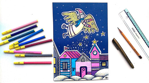 Рождество. Рисунок Ангела. Подробный пошаговый урок с элементами аппликации.