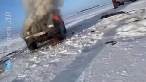 Оха. Некрасовка 4.01.23 Машина рыбака сгорела на Сахалине. Обошлось без жертв.