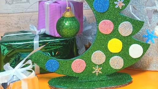Ёлочка из глиттерного фоамирана своими руками пошагово, новогодняя елочка своими руками, новогодние поделки своими руками в детский сад