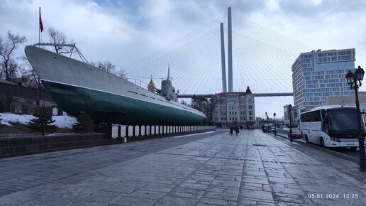 Владивосток январь 2024, центр города, подводная лодка С-56