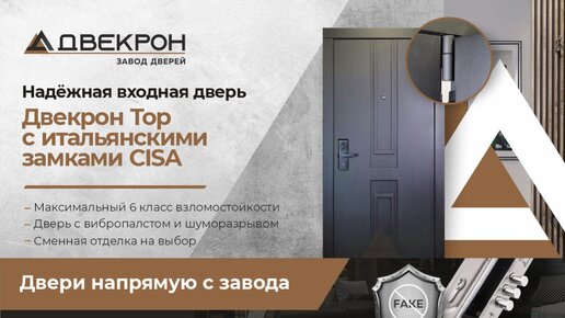 Надёжная входная дверь Двекрон Тор с итальянскими замками CISA и шумоизоляцией. Максимальный 6 класс взломостойкости. Напрямую с завода!