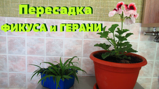 Пересадка Фикуса Бенджамина и Герани.