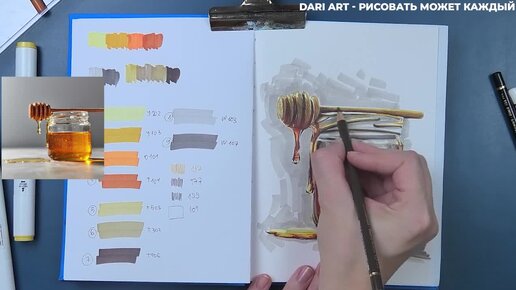 АРТ СЛАСТИ! 2 урок. Рисуем мед в банке МАРКЕРАМИ! Бесплатный урок для начинающих.