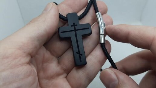 Деревянный нательный крест ручной работы. Православный крест из дерева из чёрного граба. Резной крестик на толстом гайтане.