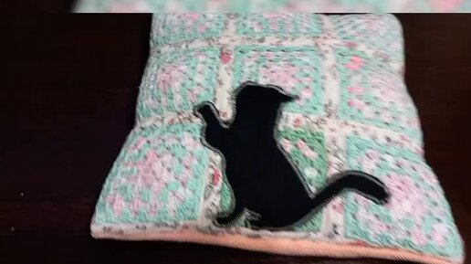 Подушка в стиле фьюжн, совместила вязаные квадратики и ткань. Результат впечатляющий.
