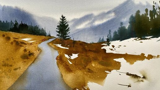 Рисуем зимнюю акварель по открытому уроку Вероники Калачёвой. Ещё больше акварели можно найти тут https://klch.ru/y/057d259