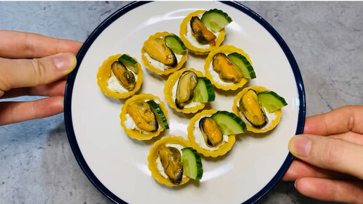 Тарталетки с подкопченными мидиями, творожным сыром и огурцом - миниатюрное лакомство на праздничный стол