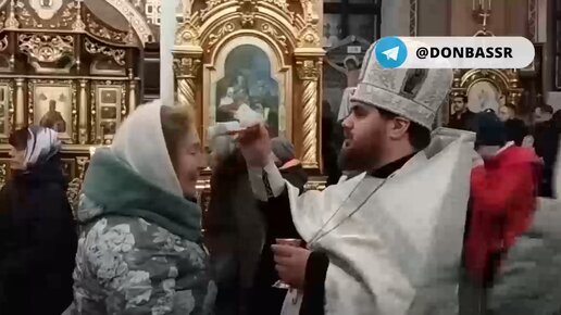Прихожане говорят, что сегодня земля в Донецке дрожит от обстрелов, но идут на праздничную службу в храм