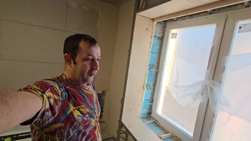 Вот так утепляю подоконник, дальше откосы