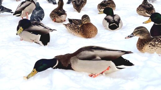 Оставшиеся зимовать дикие уточки на Комсомольской набережной г.Тольятти