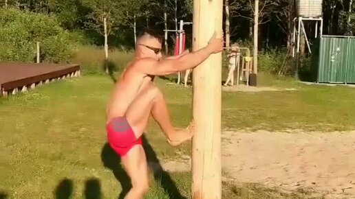 Стиль: дикая обезьяна. Пробую впервые, конечно на обмазанный маслом столб таким стилем не забраться, зато так можно лазить за кокосами..
