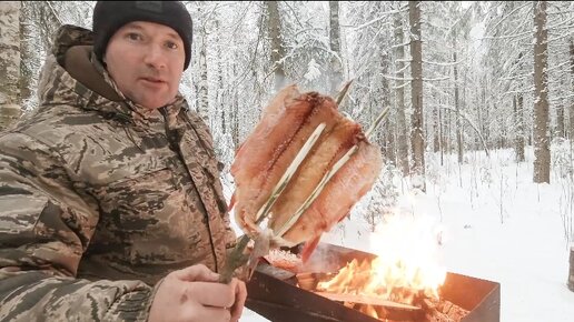 Как приготовить рыбу на рожне? Готовлю рыбу на рожне в мороз.