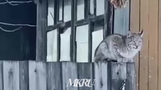 Детёныш рыси залез на забор дома в Петровске-Забайкальском