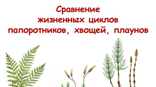Сравнение жизненных циклов папоротников, хвощей, плаунов