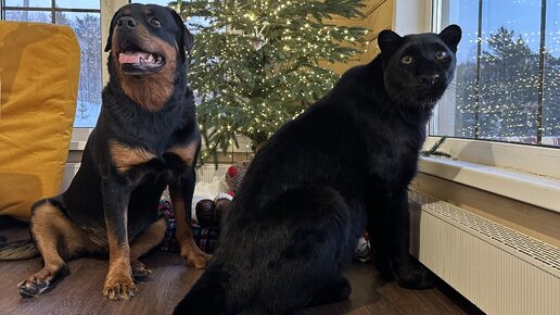 Рождество с пантерой Луной и семьей 🎄🐾😸