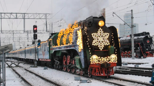 Прибытие Поезда Деда Мороза в Москву и другие поезда на Белорусском вокзале.