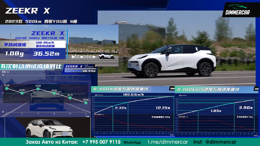 Zeekr X YOU AWD - тест разгон 0 - 100 км/ч, 400м, тест тормозной системы, DimmerCar Прямая доставка авто из Китая
