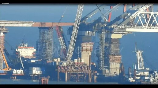 Крымский мост! Арки в тумане! Пролёты с Керчи двинули! Ж_Д опоры в подробном показе,как строят