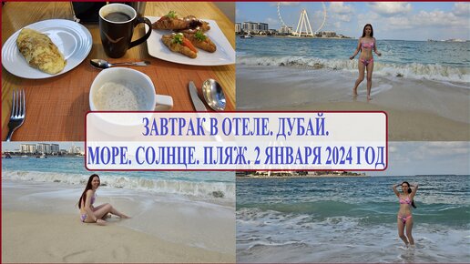 Дубай, завтрак в отеле // Мы на пляже // Купаемся, загораем, отдыхаем // Зима, январь 2024 // Отпуск