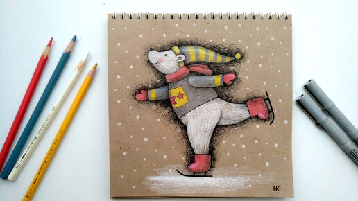 Как нарисовать милого мишку на катке. Подробный урок для начинающих.