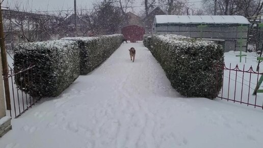 Сегодня у нас метель, но гулять с хвостиками надо в любую погоду