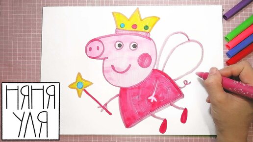 ЛЕГКИЙ УРОК рисования Свинки Пеппы для детей | Как нарисовать Свинку Пеппу принцессу фею | Няня Уля